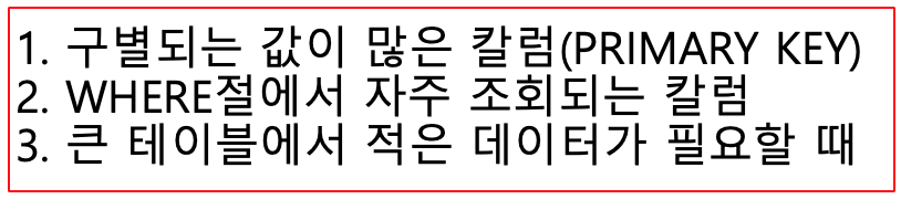 2. 인덱스를 적용한 컬럼이 where 절에서 많이 사용되는 경우 (*****)