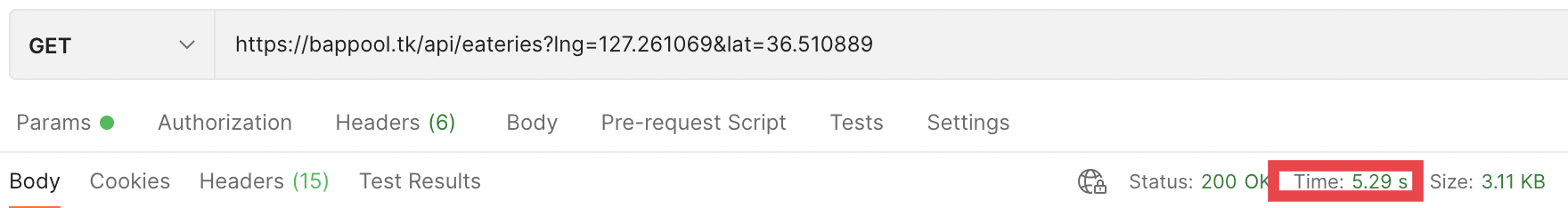 하나의 음식점의 세부정보를 위한 API 호출 1. 외부 API 호출을 통해 음식점 리스트를 가져온다. 2. 상위 5개의 데이터에 대해 세부정보(카테고리, 음식점 사진, 음식점 url)가 없는 경우 해당 정보를 추가한다. 1) 카테고리 정보가 없는 경우, 외부 API를 호출하여 카테고리 정보를 추가한다. 2) 음식점 사진 정보가 없는 경우, 외부 API를 호출하여 음식점 사진 정보를 추가한다. 3) 음식점 url 정보가 없는 경우, 외부 API를 호출하여 음식점 url 정보를 추가한다. 3. 클라이언트에게 음식점 리스트를 반환한다.